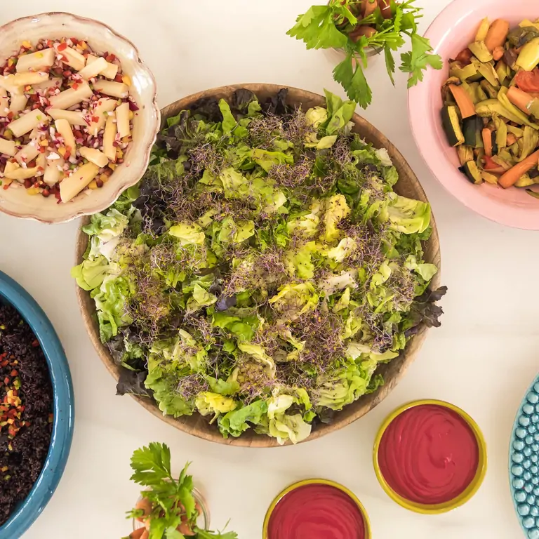 You will experience our 100% plant-based and gluten-free cuisine, prepared so that everyone, vegan or not, can enjoy healthy cooking. You will be served a breakfast buffet suitable for everyone. The buffet includes healthy juices and smoothies, homemade breads, a savory section, and a sweet section.