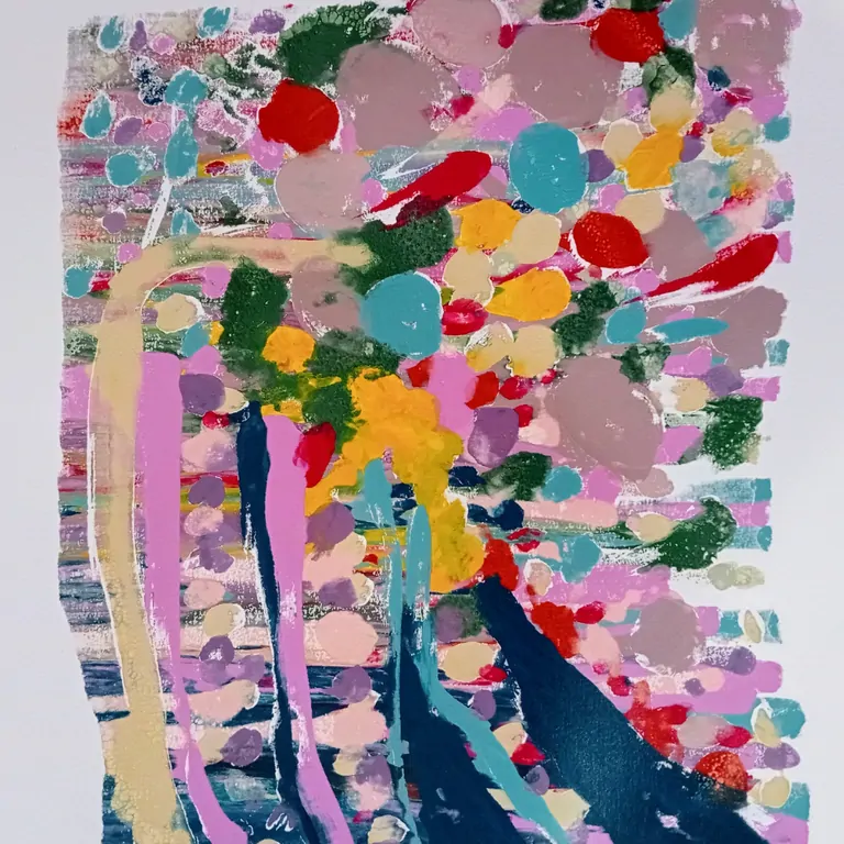 What will we do? We will create two monotype screen prints, an experimental technique that combines painting and screen printing. Drawing, composition, color, painting, and screen printing intermingle to achieve these serigraphy monotypes.